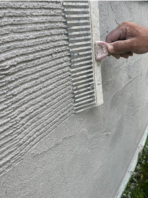 Application: Lime Stucco Coarse Finish is applied in a single coat and typically finished with a sponge float or skip trowel technique.