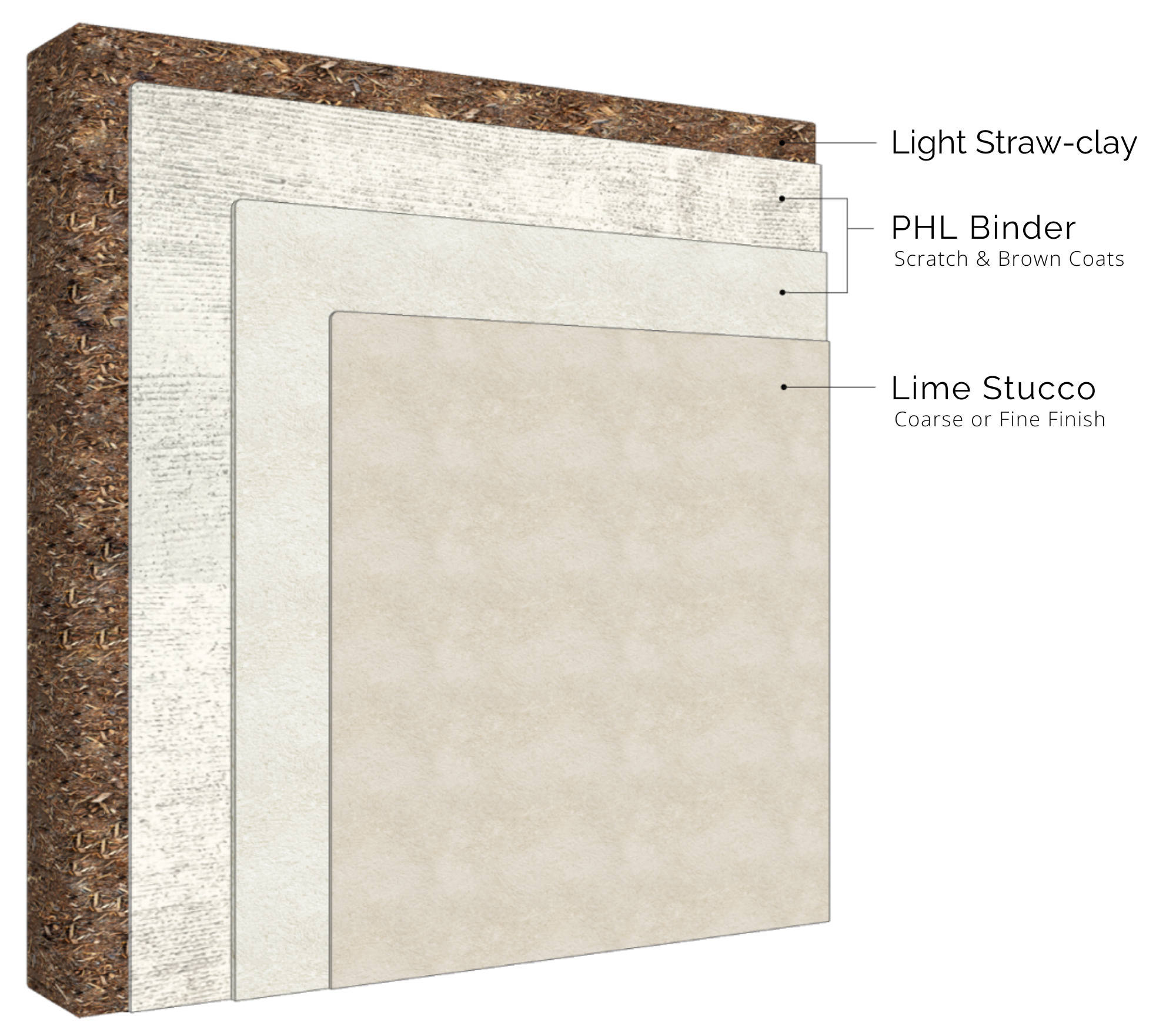 Earthaus BUILD is an innovative pozzolanic hydraulic lime (PHL) plaster system designed for exterior application over a variety of earthen and bio-based substrates.